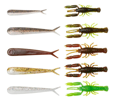 The perfect crayfish kit for perch, with highly effective colours and jig heads. 20x 7.3cm Reaction Crayfish 5x of each great colour: Motor Oil, C...